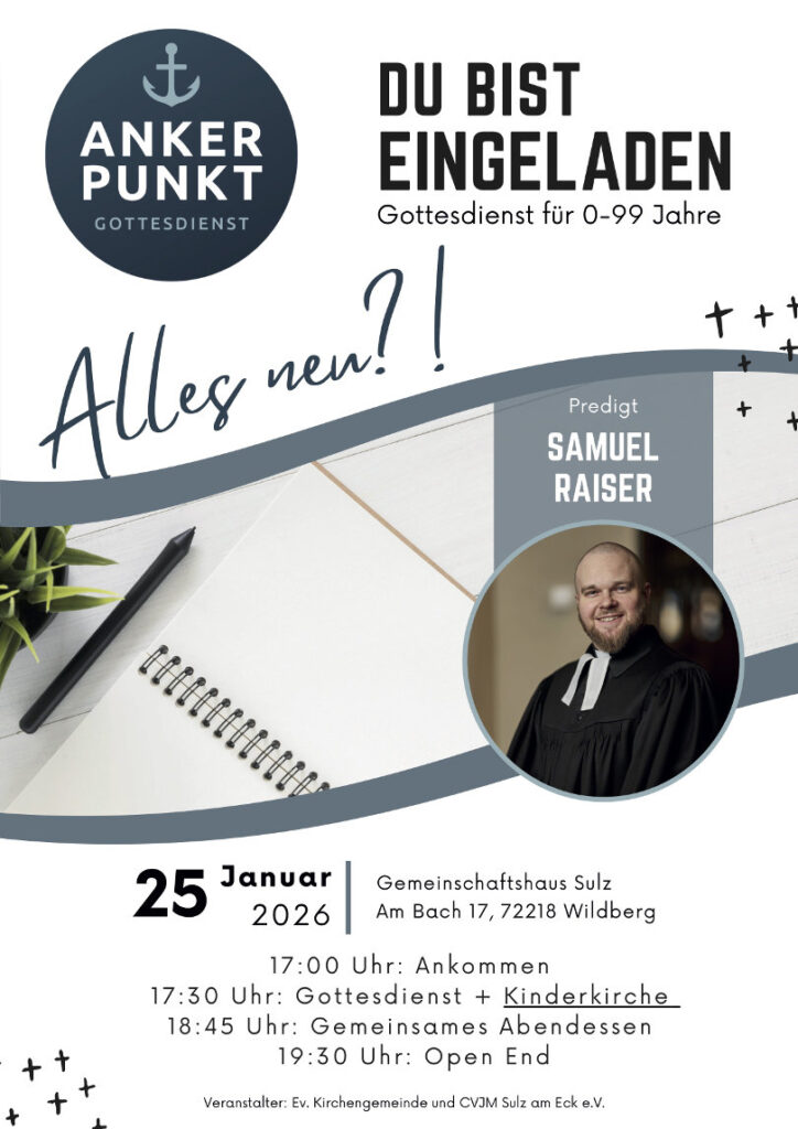 Herzliche Einladung zu unserem nächsten Ankerpunkt Gottesdienst am 25. Januar um 17:30 Uhr im Gemeinschaftshaus: