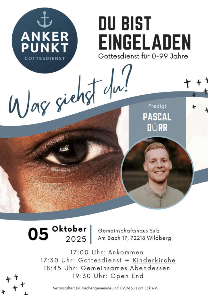 Herzliche Einladung zu unserem nächsten Ankerpunkt Gottesdienst am 5. Okober um 17:30 Uhr im Gemeinschaftshaus: