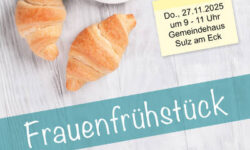 Herzliche Einladung zum Frauenfrühstück am Donnerstag, 27. November um 9 Uhr im Ev. Gemeindehaus in Sulz am Eck in der Hohnerstr. 29