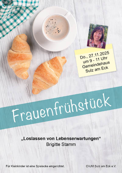 Herzliche Einladung zum Frauenfrühstück am Donnerstag, 27. November um 9 Uhr im Ev. Gemeindehaus in Sulz am Eck in der Hohnerstr. 29